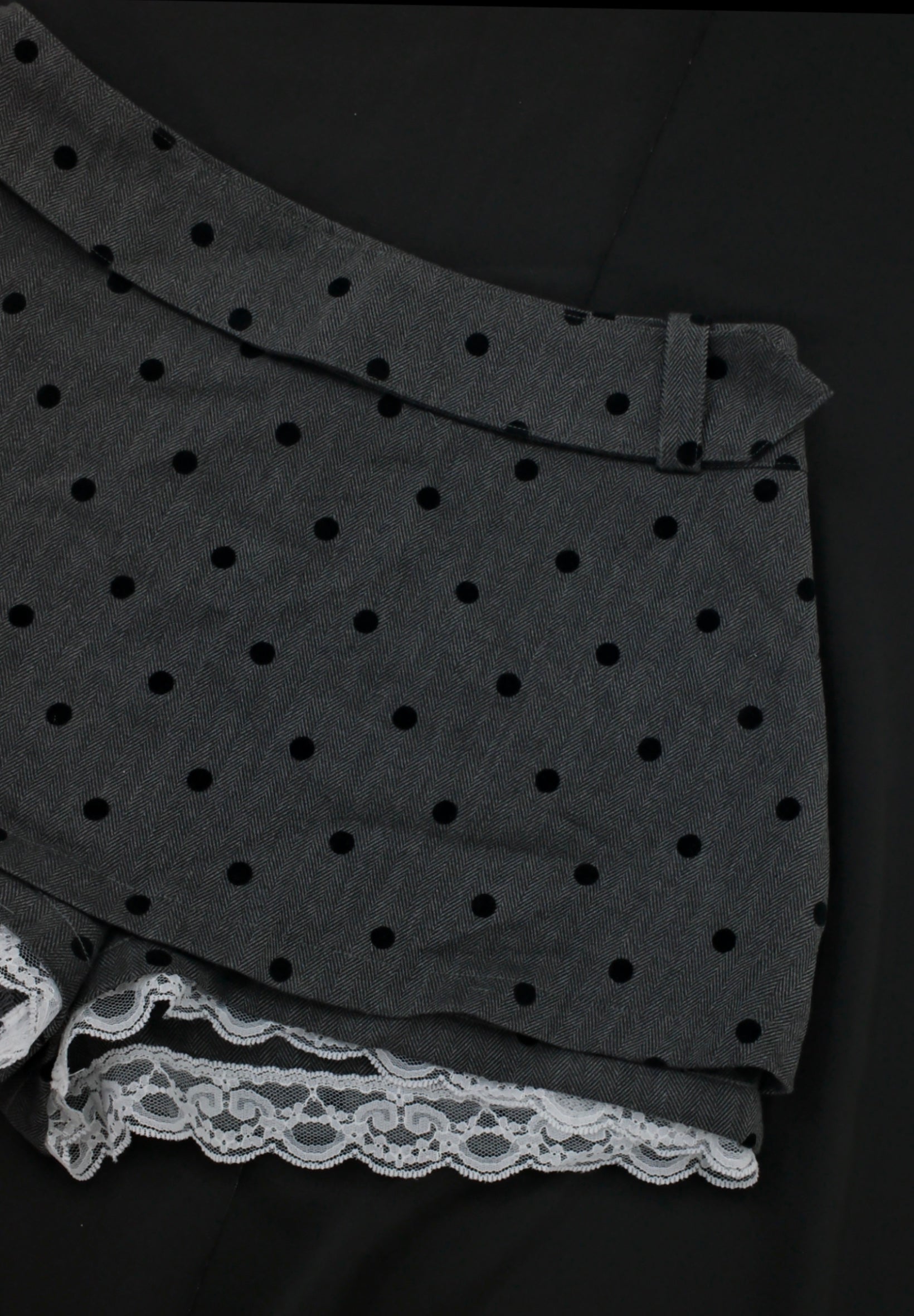 Introducing Polka Skort , cute and comfy with these soft grey shorts, featuring a timeless black polka dot print and delicate white lace trim. The high-waisted fit flatters your shape, while the breathable fabric keeps you relaxed all day. Perfect for lounging or sleepwear — stylish comfort made effortless.