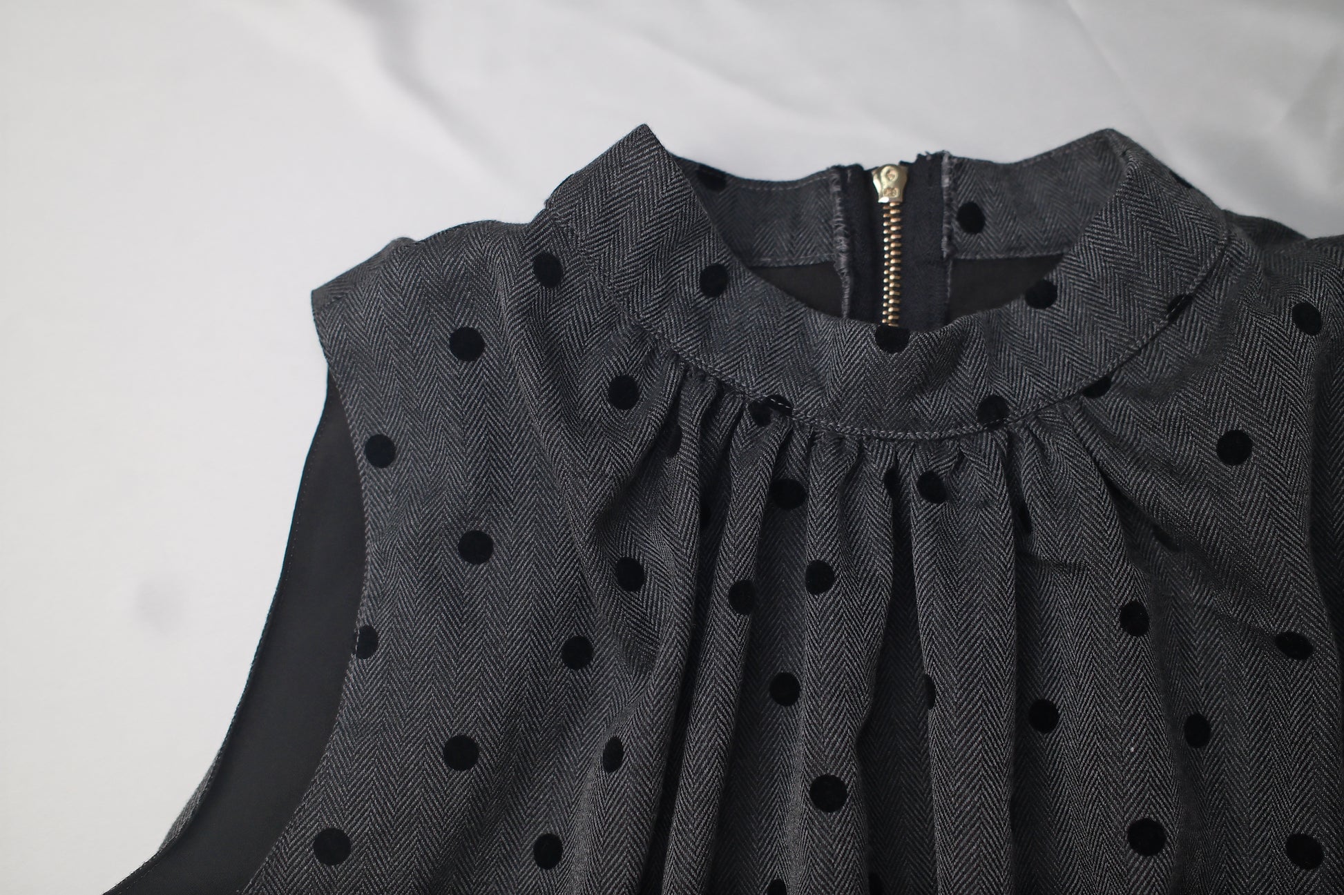 Introducing Polka Top ,sleeveless high-neck top featuring soft pleats and delicate velvet polka dots. Designed with a relaxed, airy silhouette and a slightly cropped hem, it effortlessly blends vintage charm with modern elegance. Pair it with matching bottoms or high-waisted jeans for a timeless chic style.